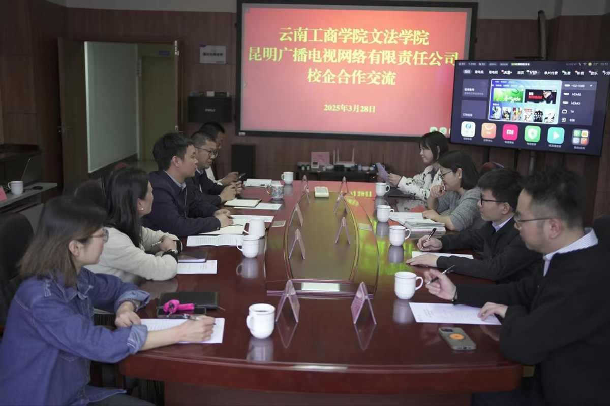 下午2点,调研组深入昆明市广播电视台。与昆明广播电视网络有限责任公司党委委员、副总经理赵俊仕、殷小松等11位负责人展开深度对话。双方就汉语言文学专业和网络与新媒体专业人才培养、岗位需求、就业实习等进行了深入交流,并初步达成了共建校政企合作意向。
